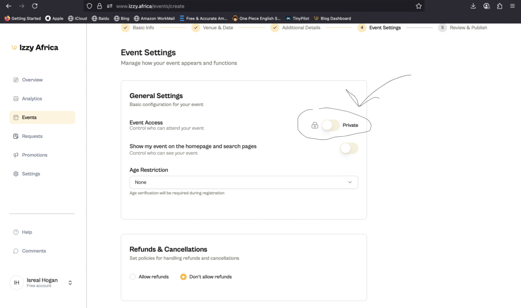 Hosting your private event on Izzy Africa empowers you with tools designed specifically for this purpose: